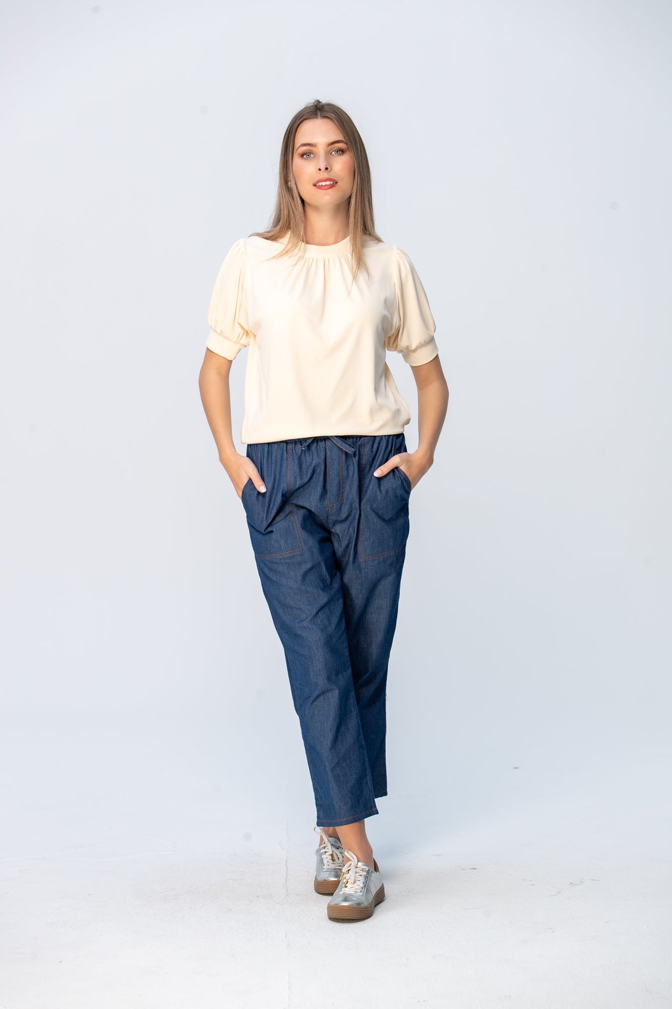 Timeless elegance meets intentional design in our beloved ASPEN SUMMER TEE. This sophisticated piece features refined gauging at the neckline and subtle gathering at the shoulder seam, elevating the everyday staple with thoughtful details.