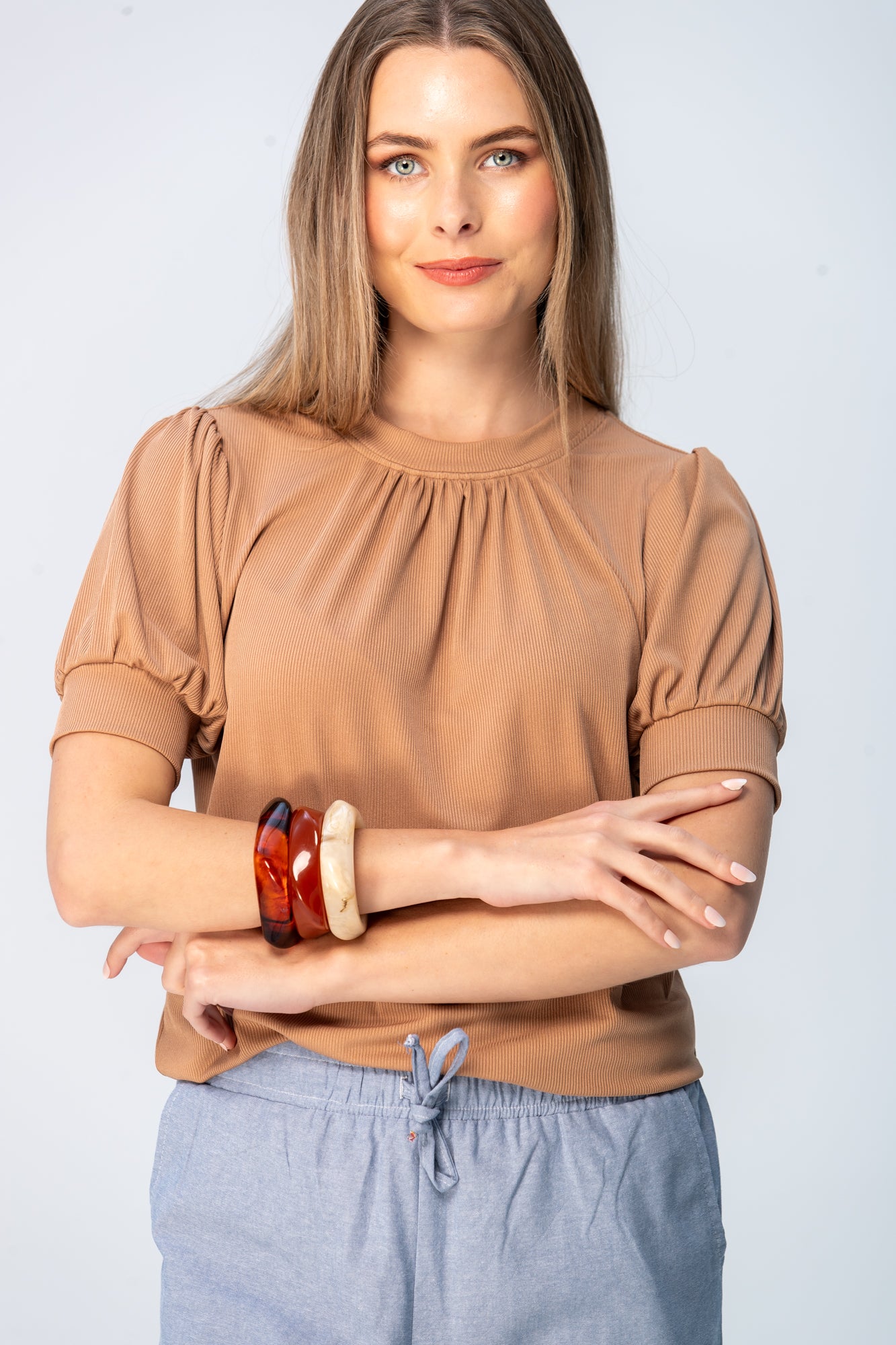 Timeless elegance meets intentional design in our beloved ASPEN SUMMER TEE. This sophisticated piece features refined gauging at the neckline and subtle gathering at the shoulder seam, elevating the everyday staple with thoughtful details.