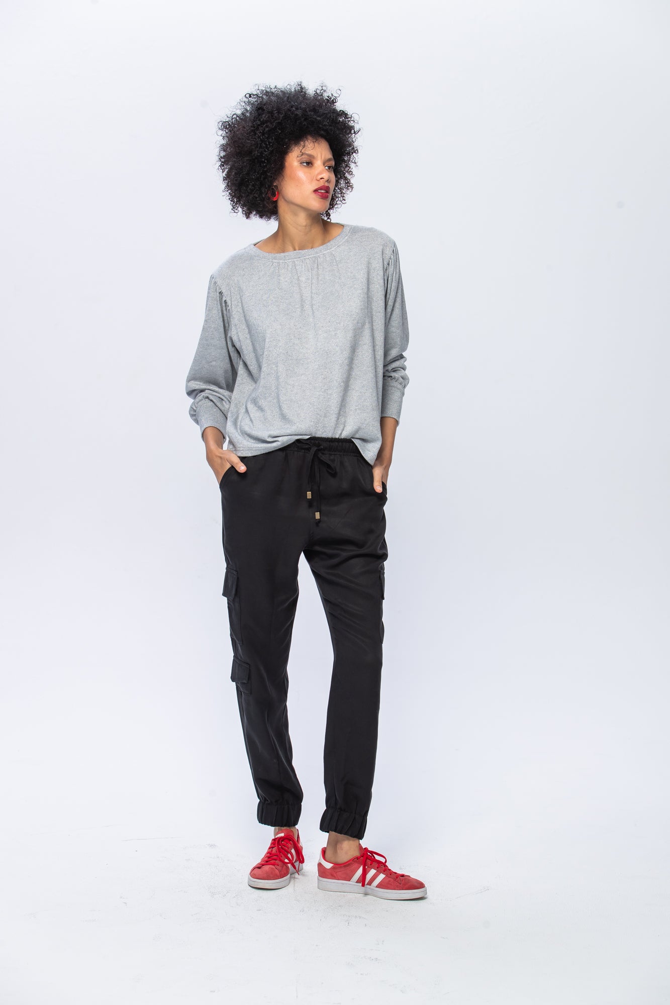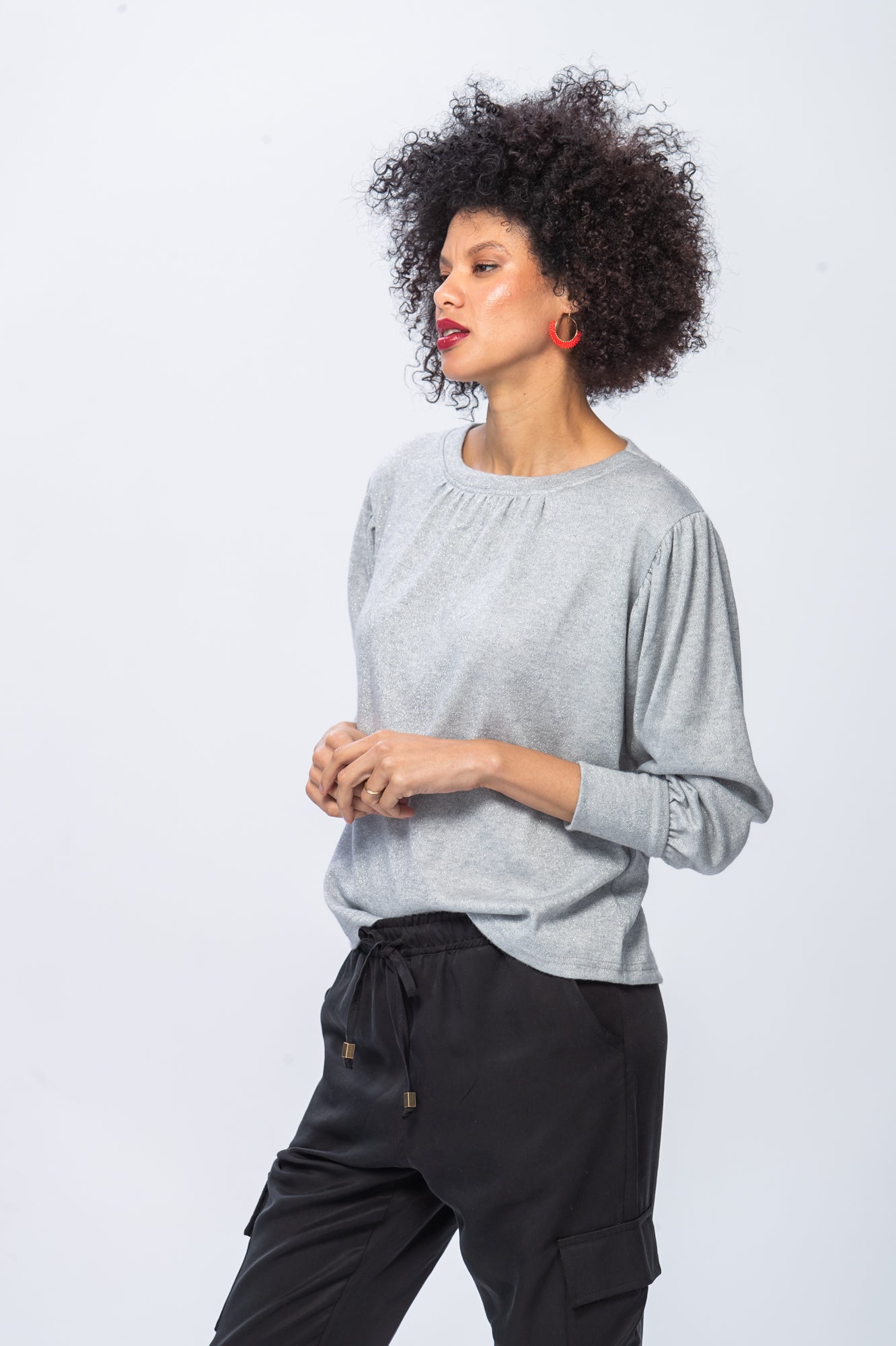 Its relaxed silhouette features elegant gathering at the neckline, while fitted cuffs create a flattering line. The rich black tone creates a sophisticated foundation that speaks to your inherent confidence, carefully balanced with timeless design.