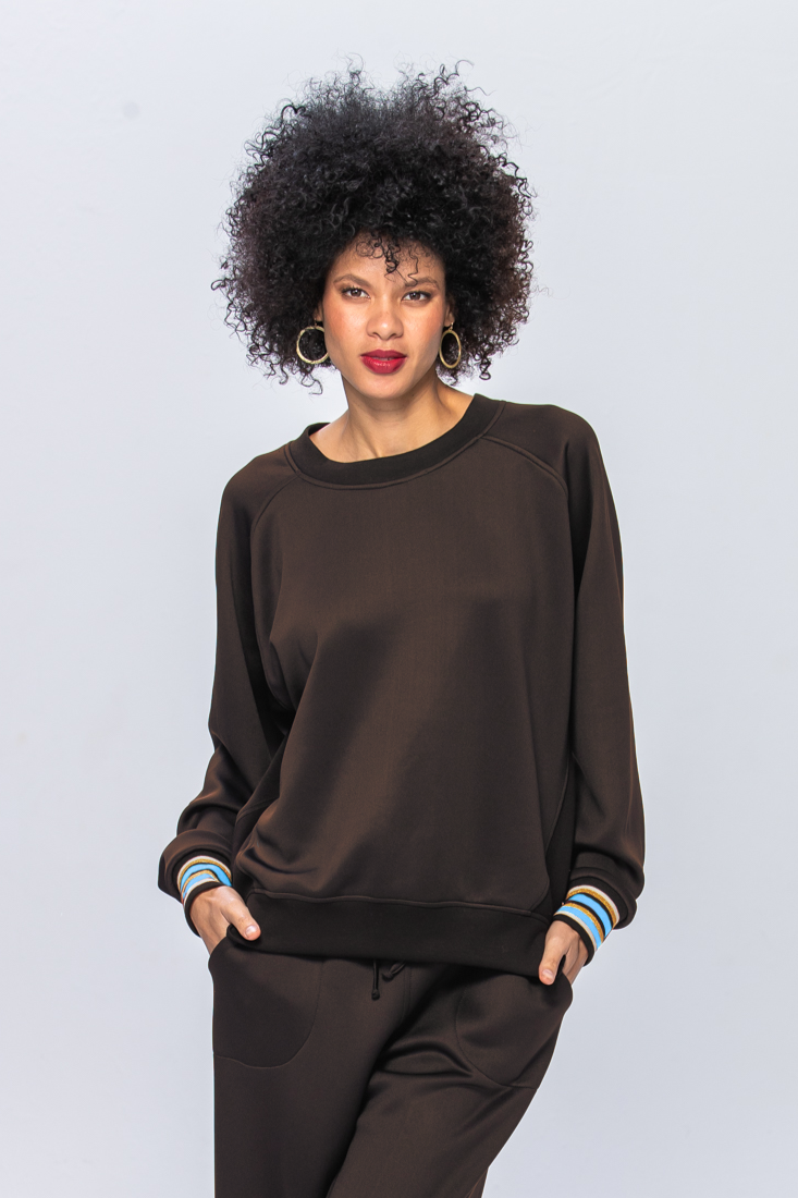 Embrace comfort with attitude in the BILLIE SWEATSHIRT - a standout piece from our new UNTAMED COMFORT collection. This relaxed sweatshirt elevates casual dressing through its rich chocolate base and thoughtful design details.