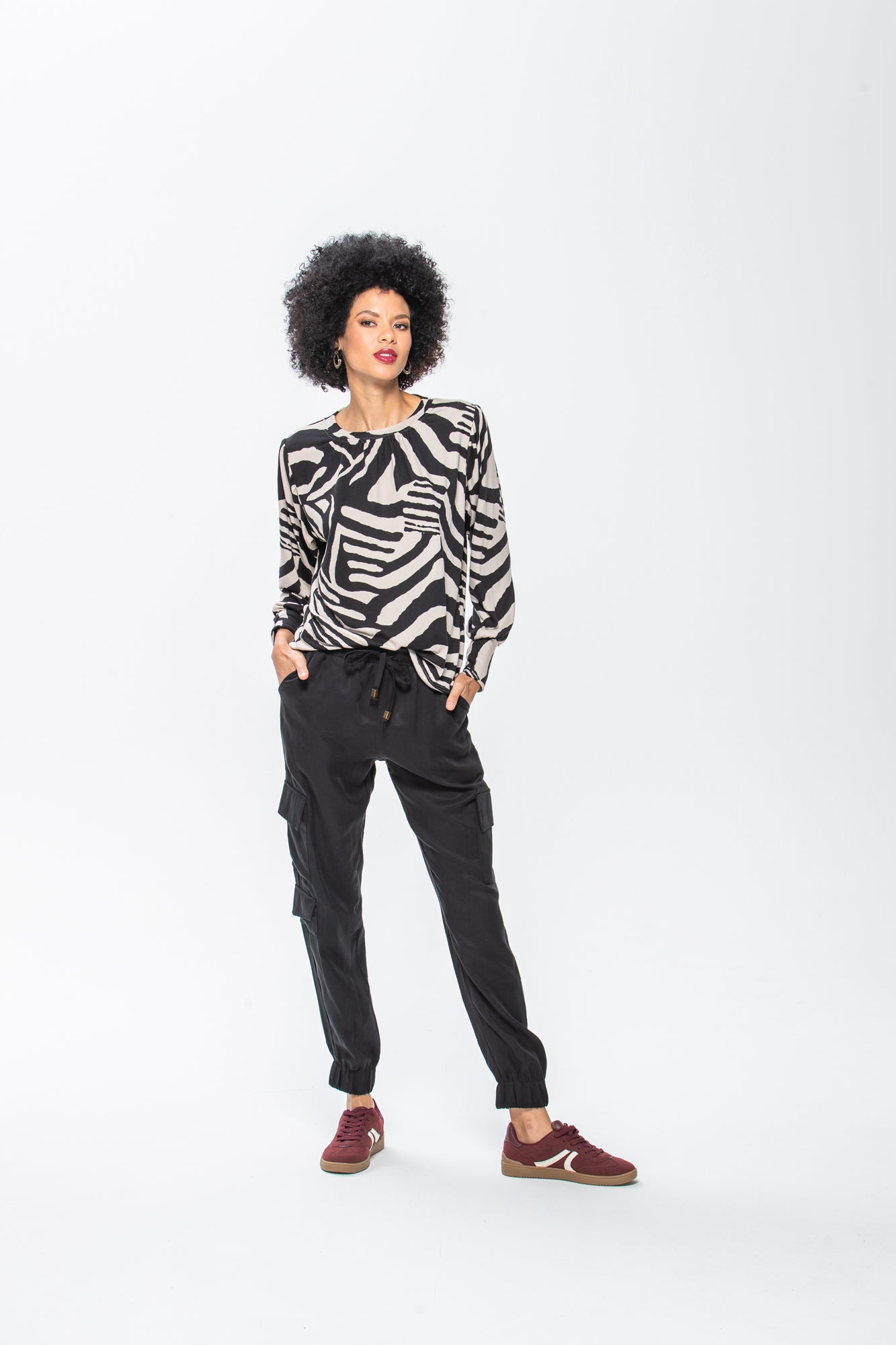 This season we reimagined our best-selling style as a wardrobe essential. Crafted from premium tencil twill, with an elasticated waistband, side cargo pockets, and ankle cuffs, these pants balance uncompromising comfort with undeniable presence. Their deep black tone pairs perfectly with structured black separates, stand out prints or earthy neutrals as you transition seamlessly between workdays and weekend wear.