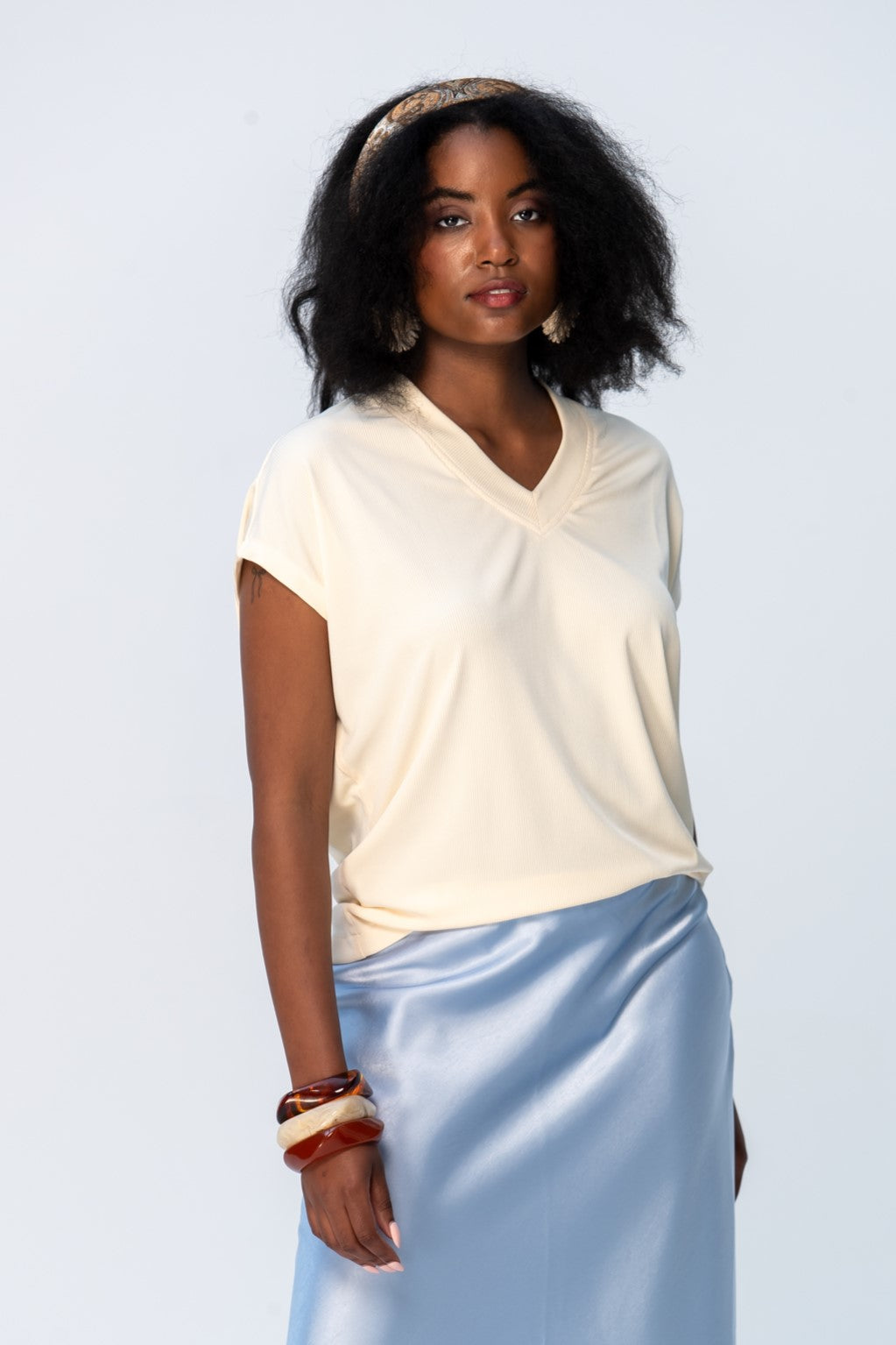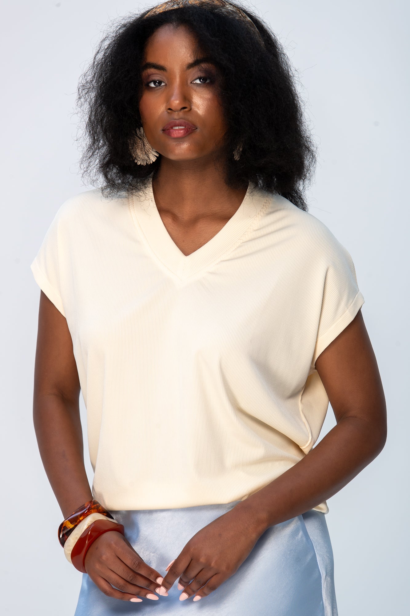 A refined classic, reimagined with intention. Our beloved CORFU V-NECK TEE returns in our intentionally upgraded soft-touch cotton rib, delivering the superior comfort and sophisticated drape you've come to expect. The flattering v-neckline and relaxed silhouette create an elevated foundation piece that transitions seamlessly from casual to polished.