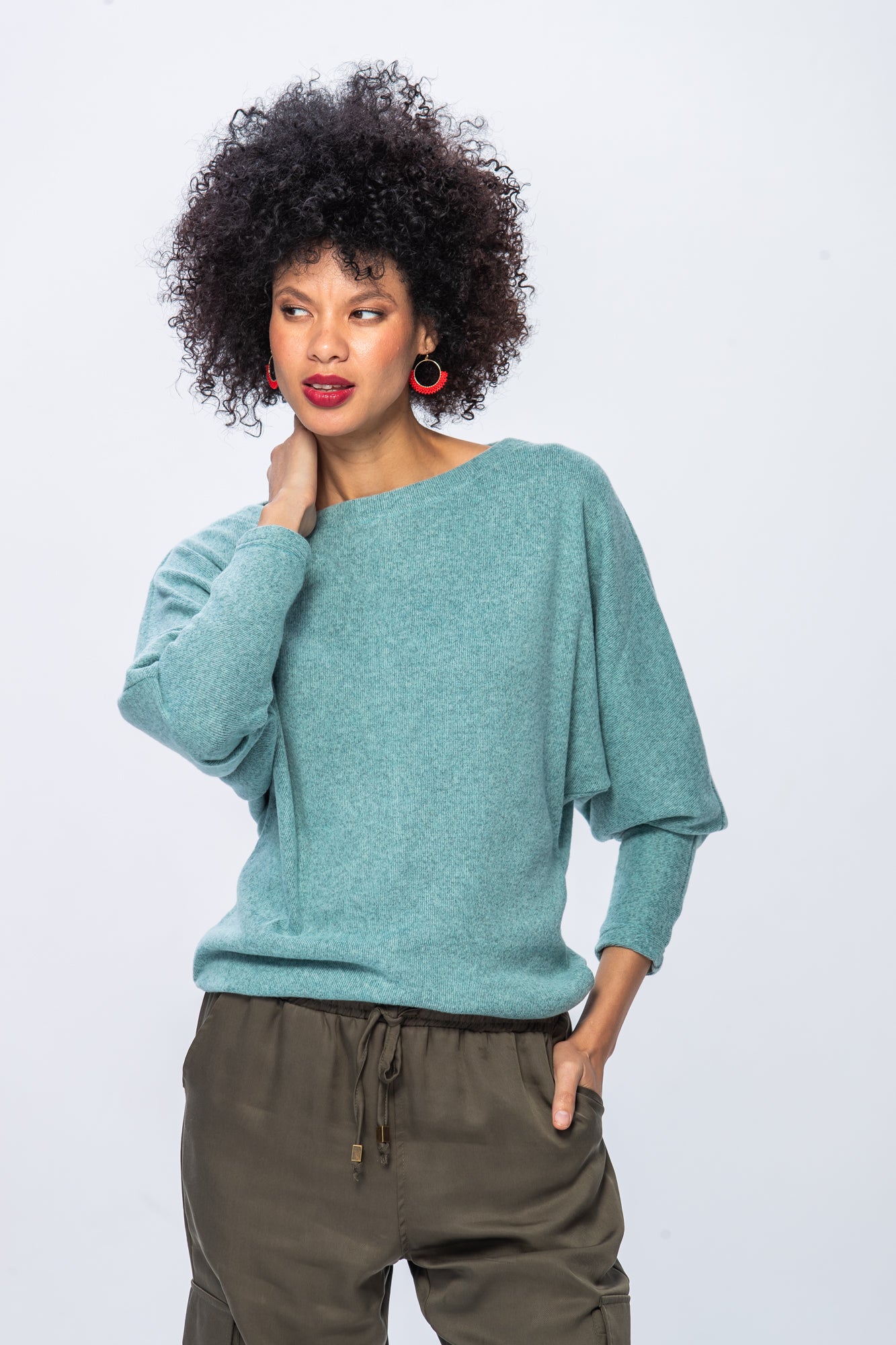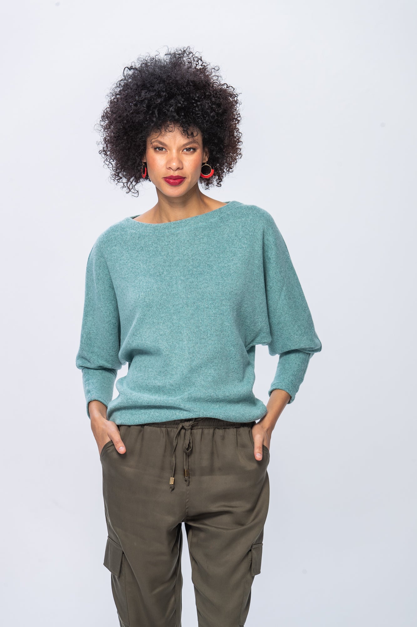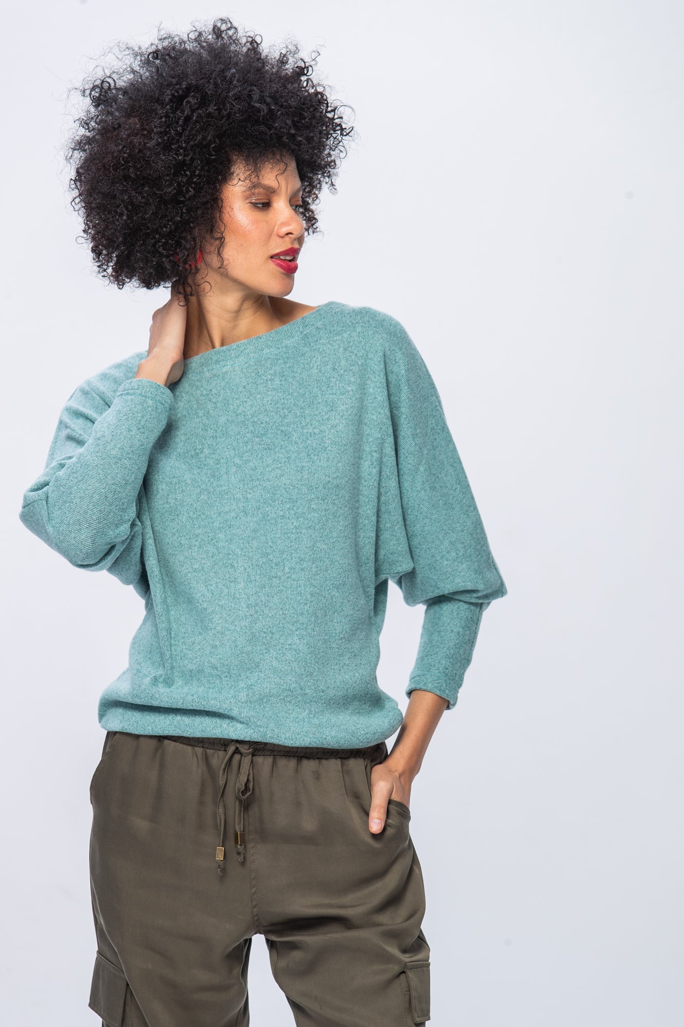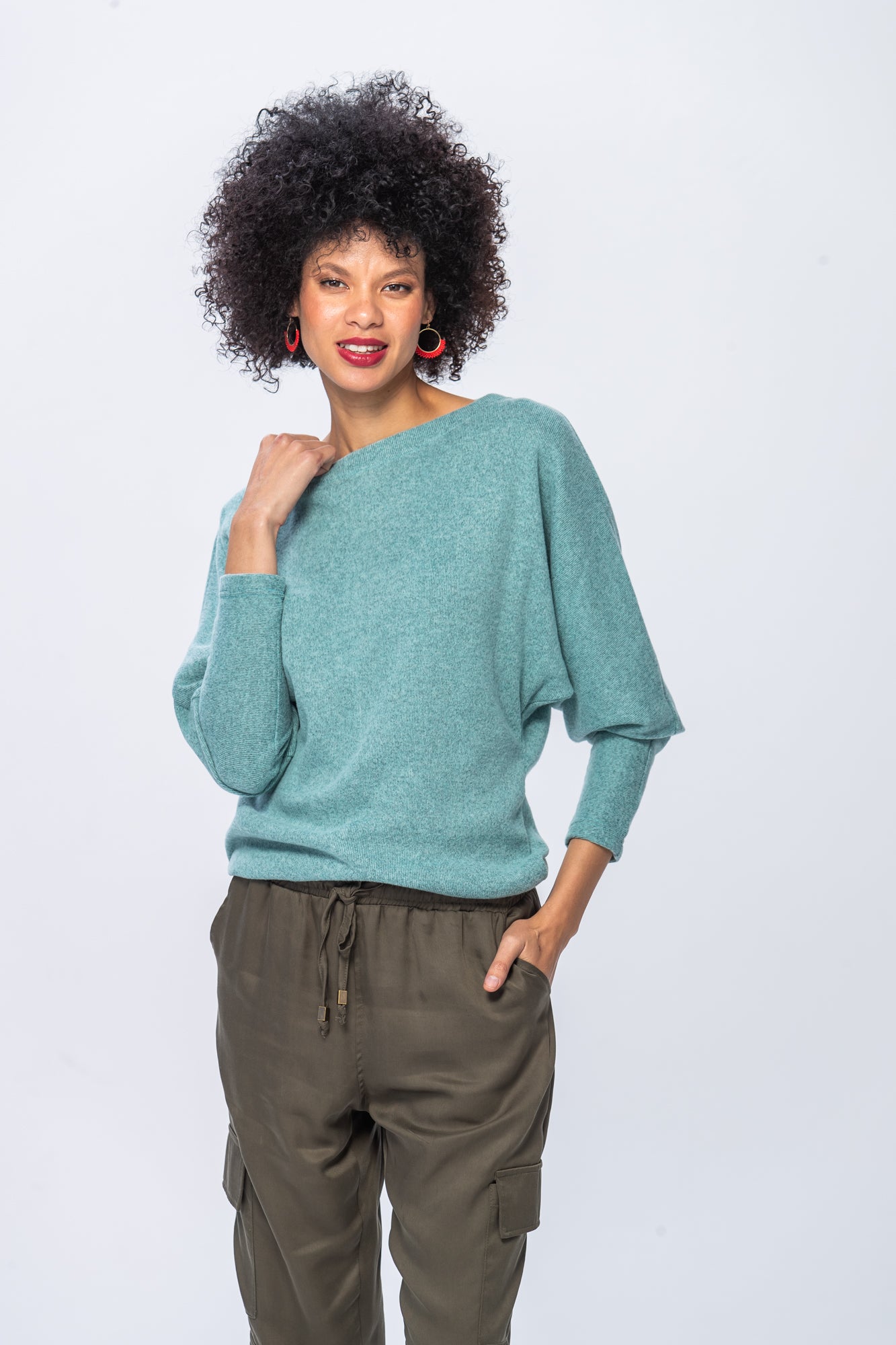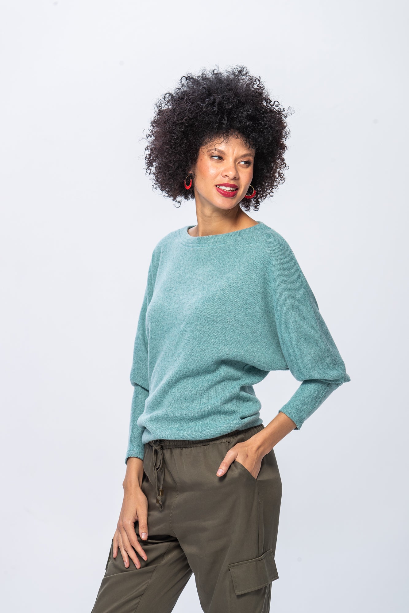 Crafted from a luxuriously soft knit, this knit top features a flattering boat neckline and relaxed dolman sleeves that create an elegant drape across the shoulders while the streamlined shape with its gently fitted cuffs and hem creates an easy wearing silhouette.