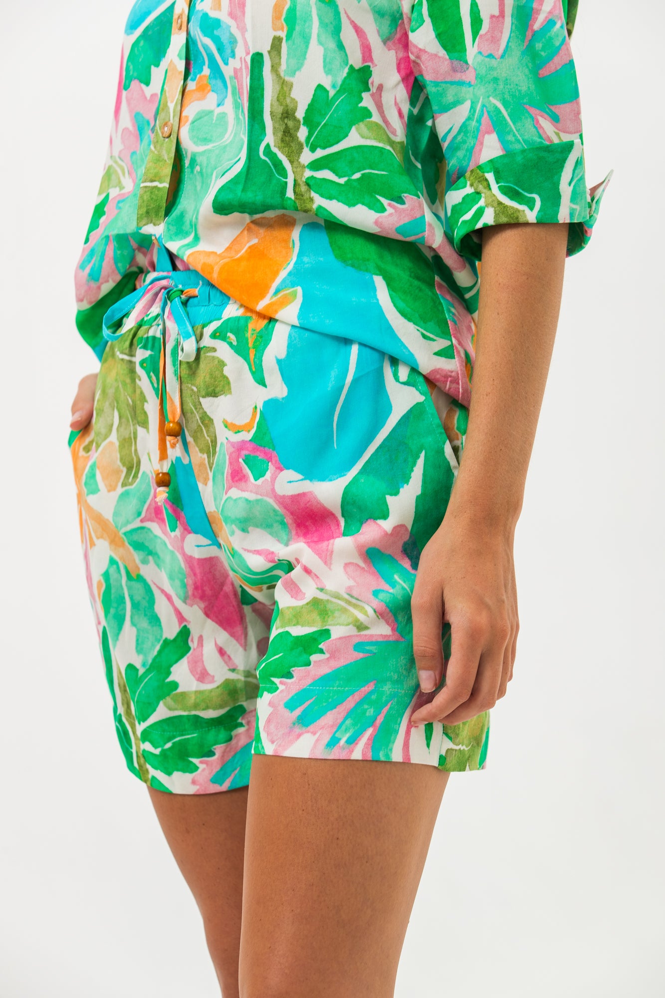 Relaxed summer style with a modern edge in our beloved IBIZA SHORTS now available in stunning tropical print - these fully elasticated shorts feature a relaxed silhouette designed for effortless comfort and contemporary appeal.