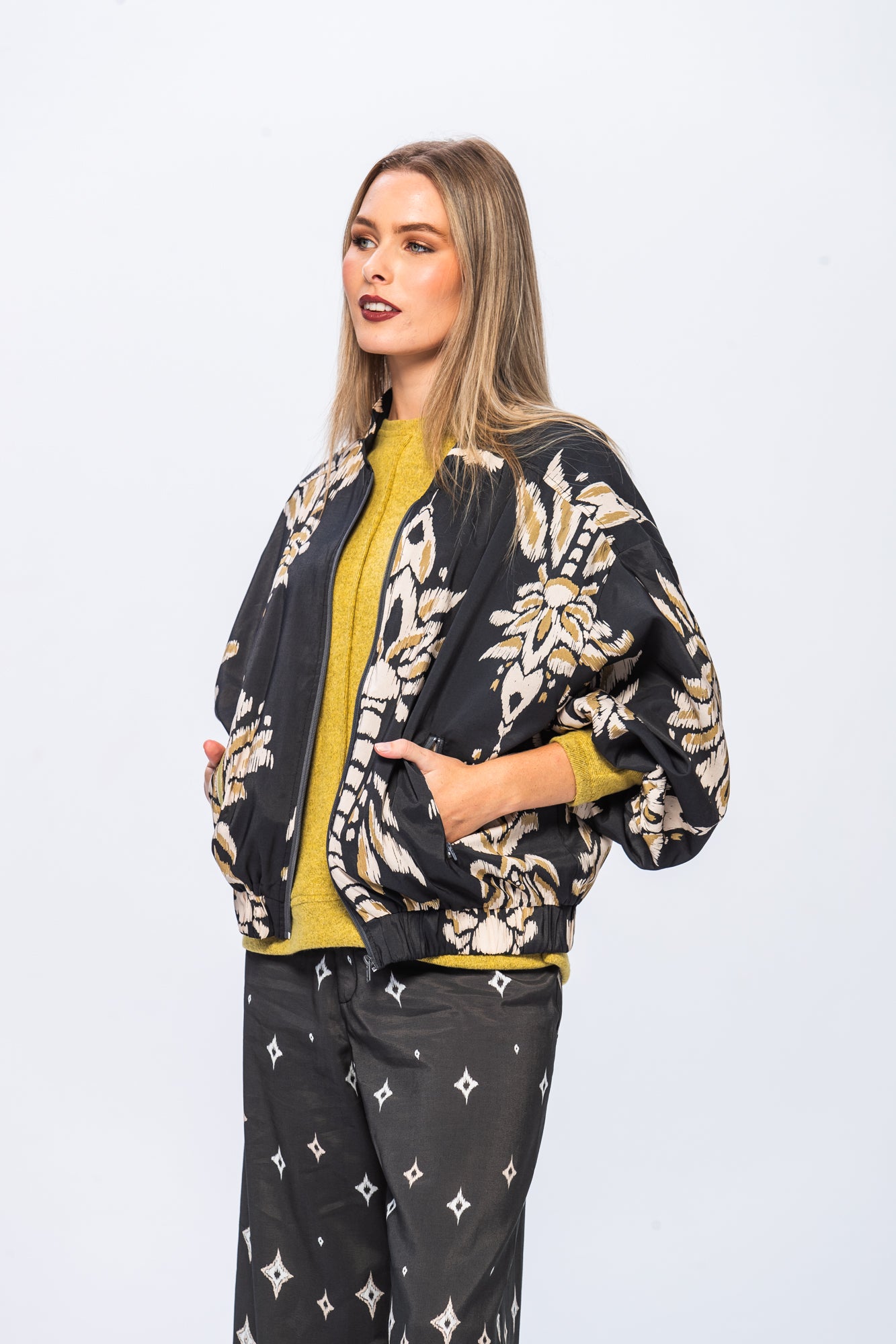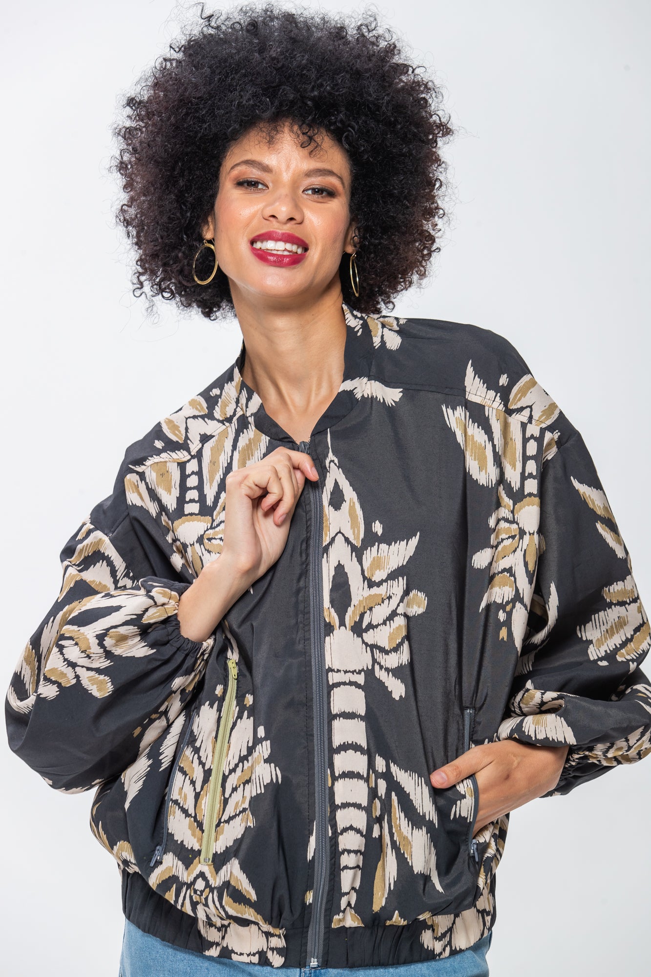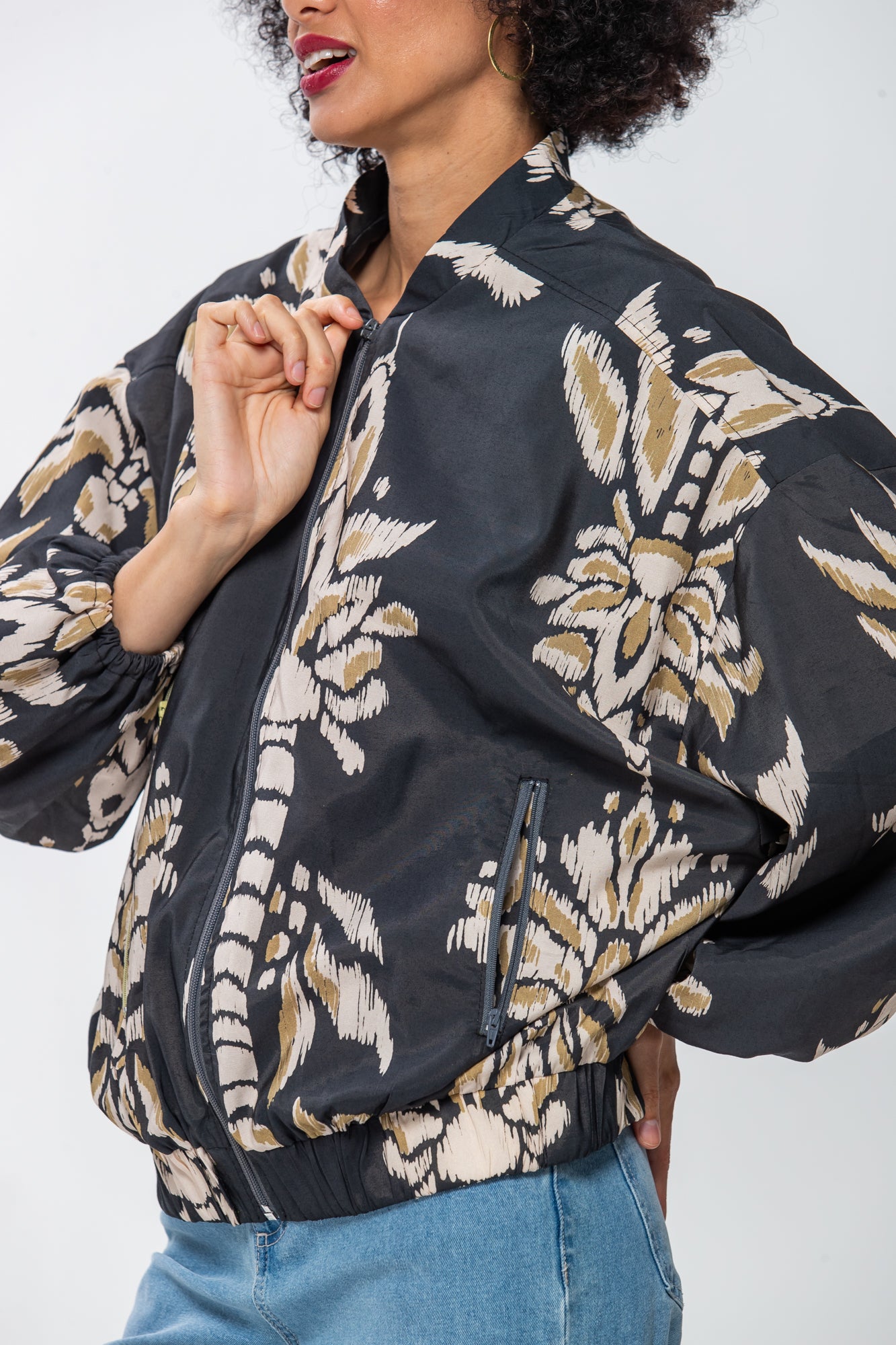 This is not your ordinary bomber, fabulously light Ikat print fabric, and "go to" travel item!