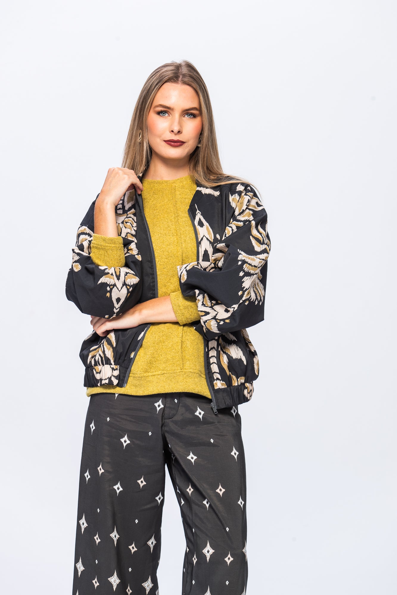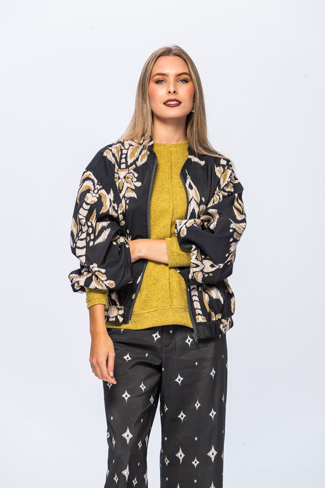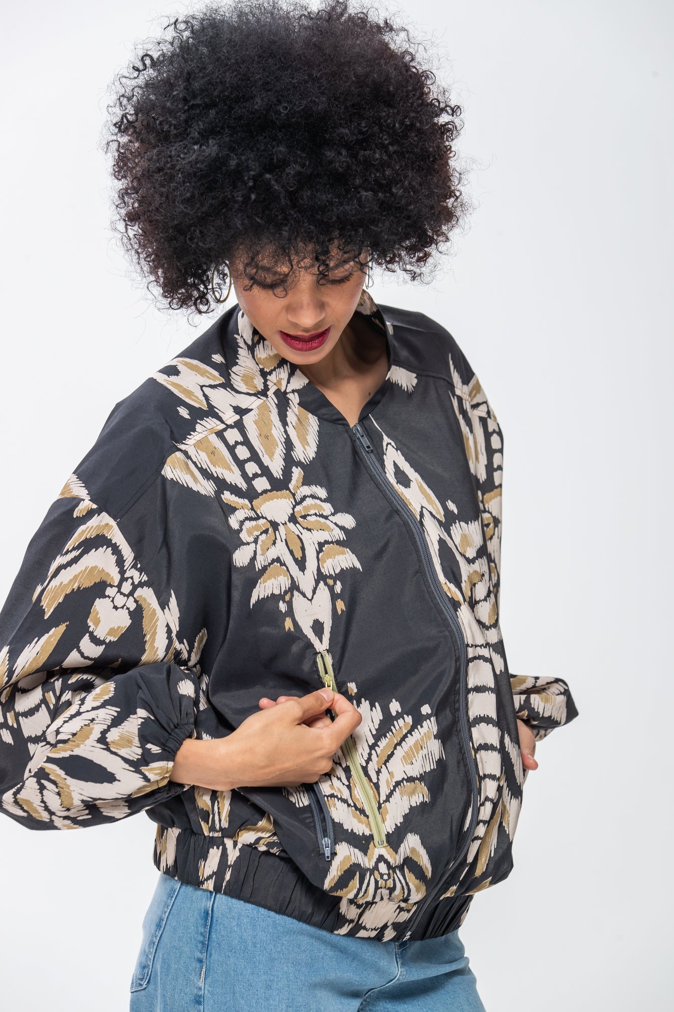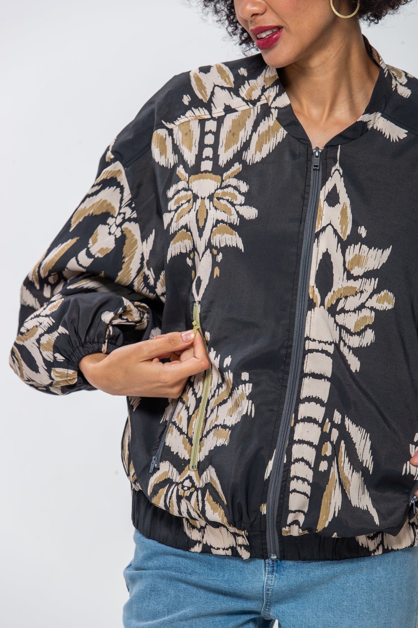 This is not your ordinary bomber, fabulously light Ikat print fabric, and "go to" travel item!