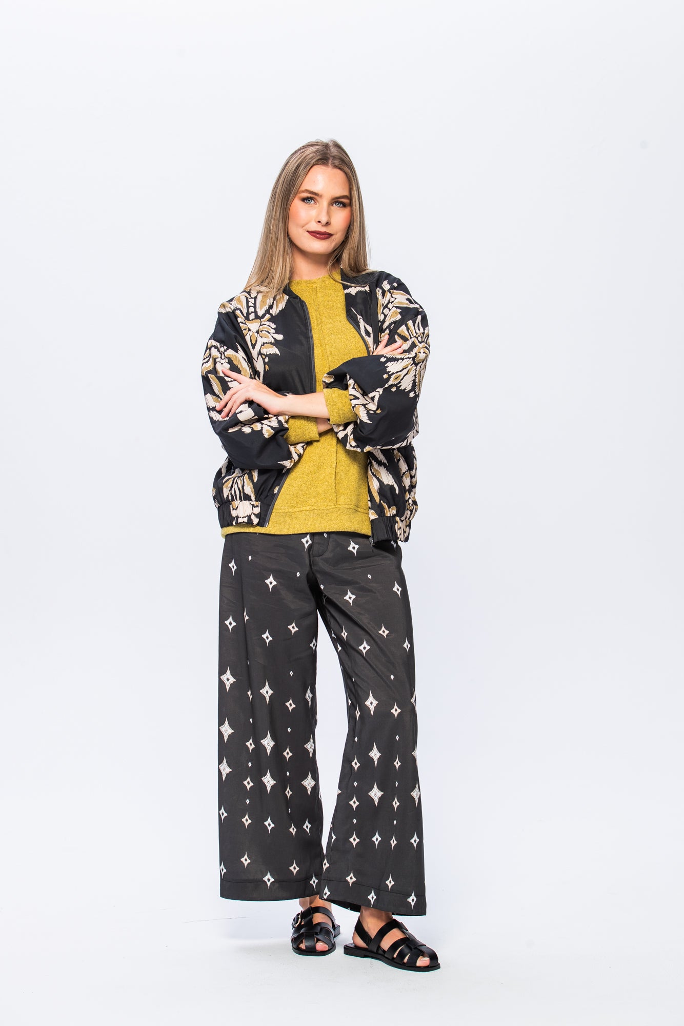 Pair with simple black pieces to let the jacket be the star, or style with our soon-to-be-released wide leg pants in contrast print for maximum impact.