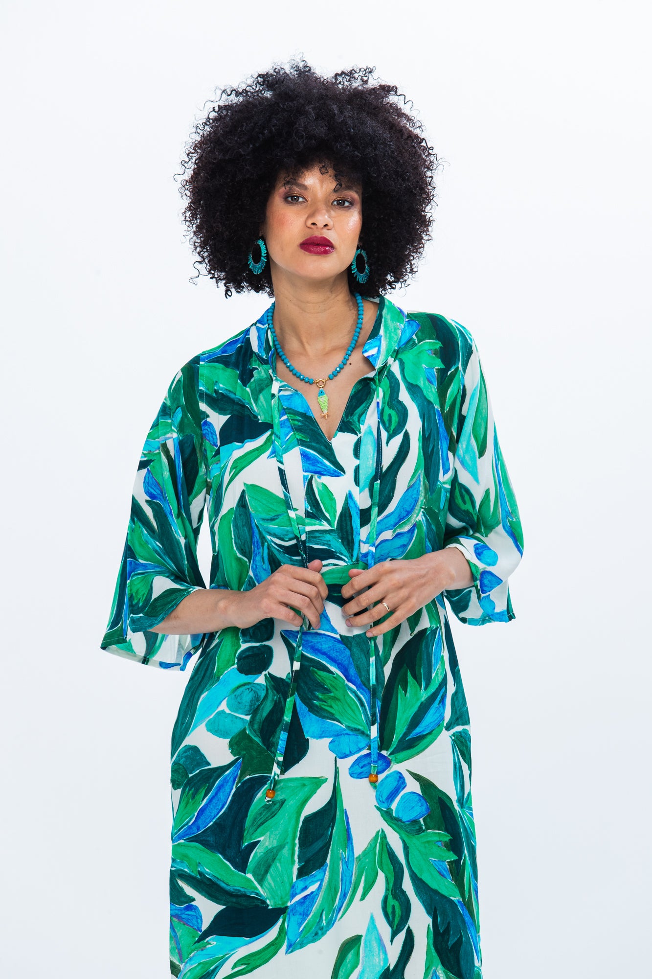 In our exclusive Tropical Leaf Print - its fresh, vibrant, and unmistakably summer.