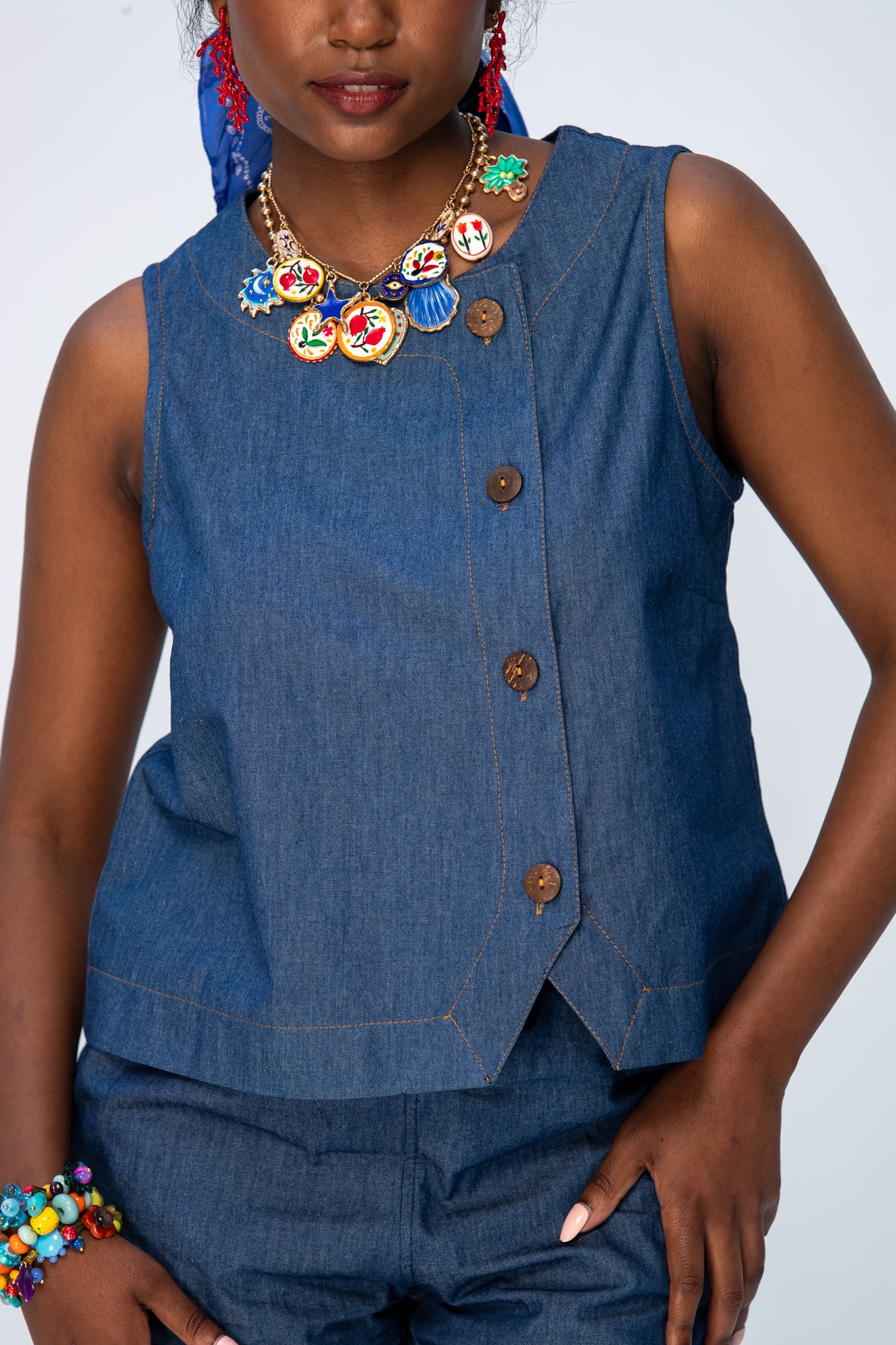 Part of our Denim Collection, the Maya waistcoat is all about smart layering - adding structure and style to any outfit.