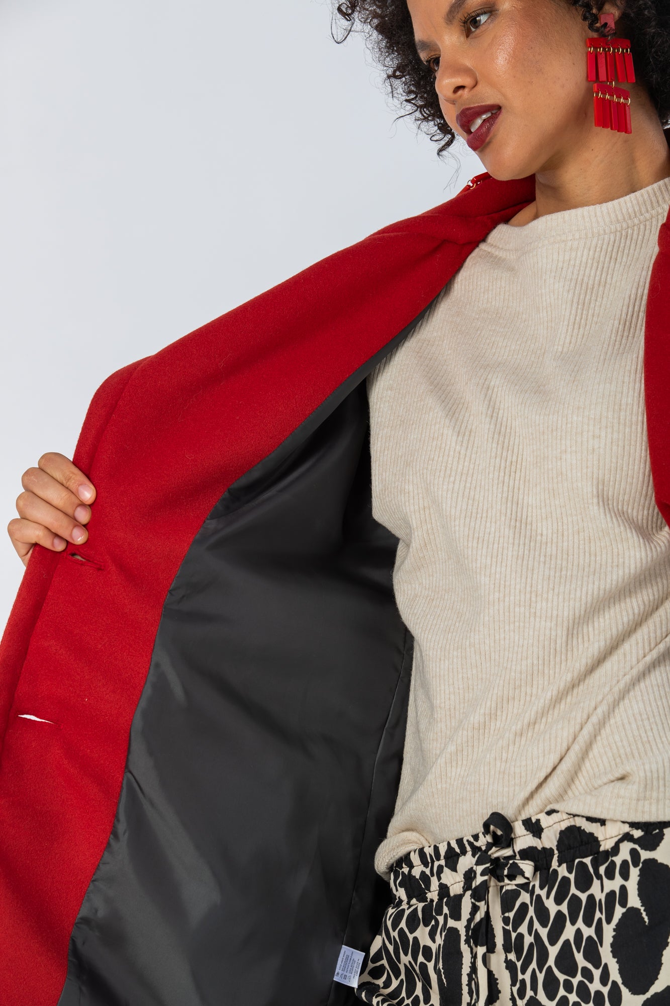 Fully lined with a dark charcoal lining for extra coziness, it effortlessly elevates any ensemble, whether paired with Boston cargo pants, jeans, or our Sydney wide-leg pants.