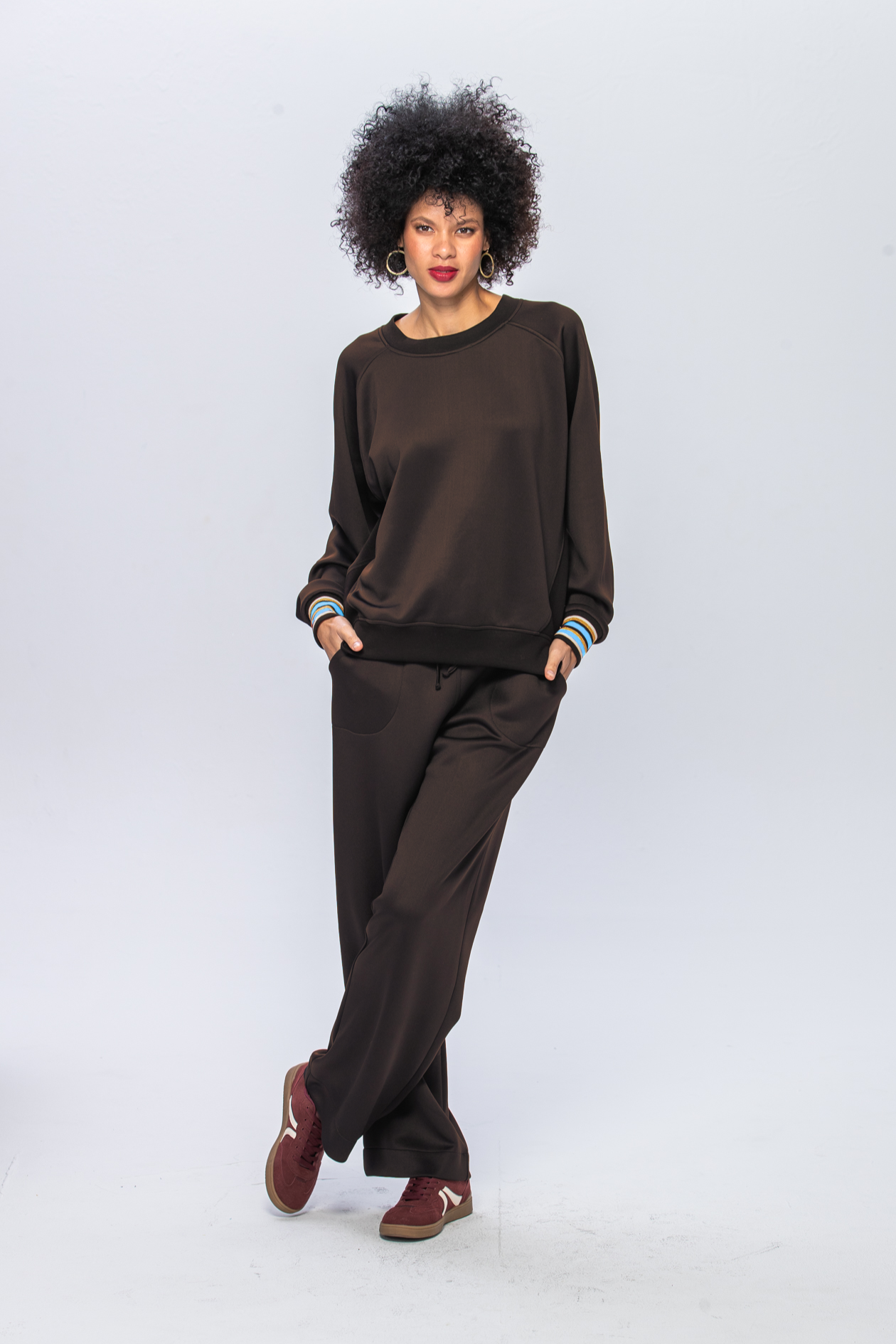 Embrace effortless elegance with the NINA WIDE LEG PANTS - the perfect companion to our Billie Sweatshirt in our new UNTAMED COMFORT collection. These sophisticated wide-leg pants bring relaxed luxury to leisurewear with their flowing silhouette and premium construction.